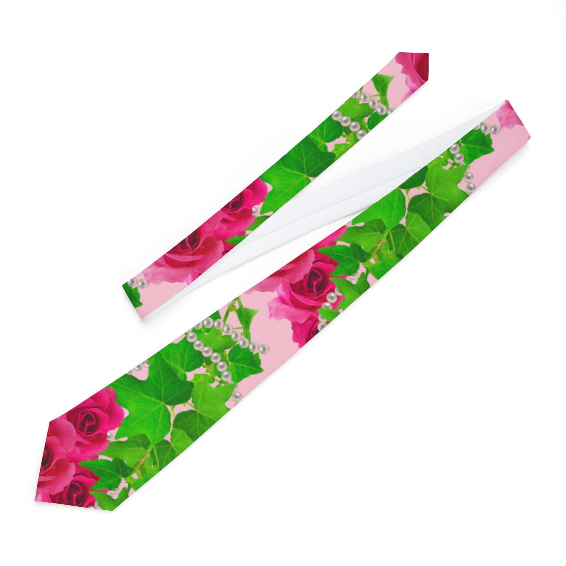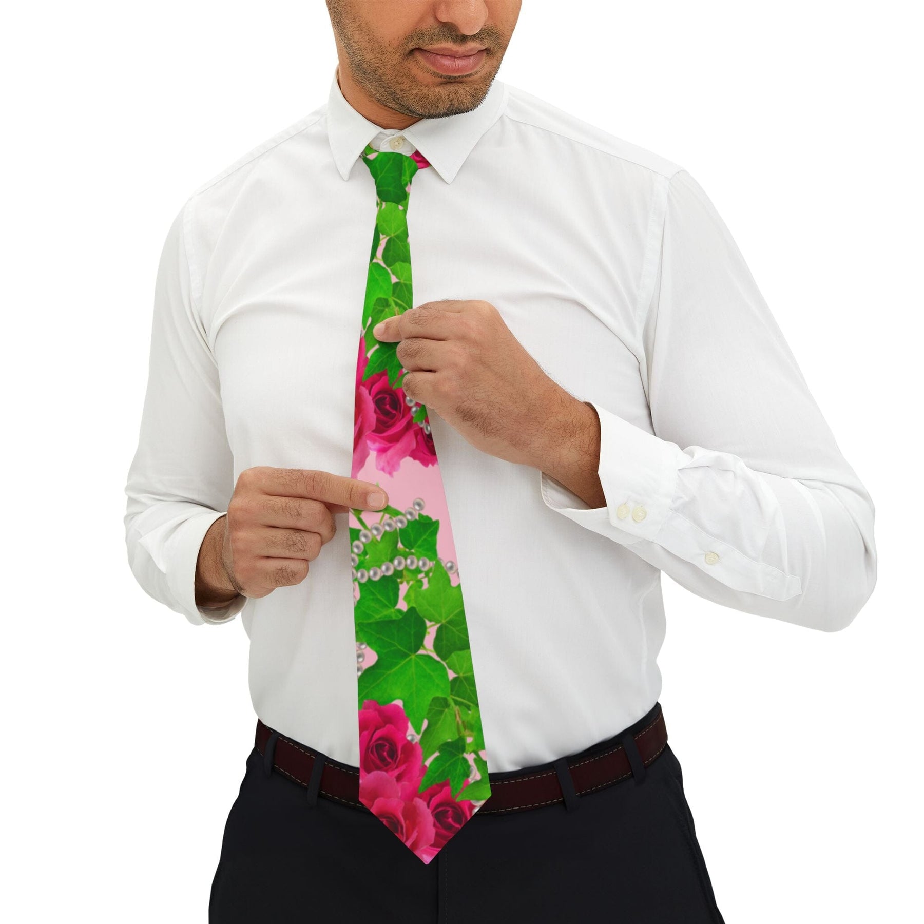 Pink and Green Roses, Ivy and Pearls Sorority Inspired Necktie | Gift for Her
