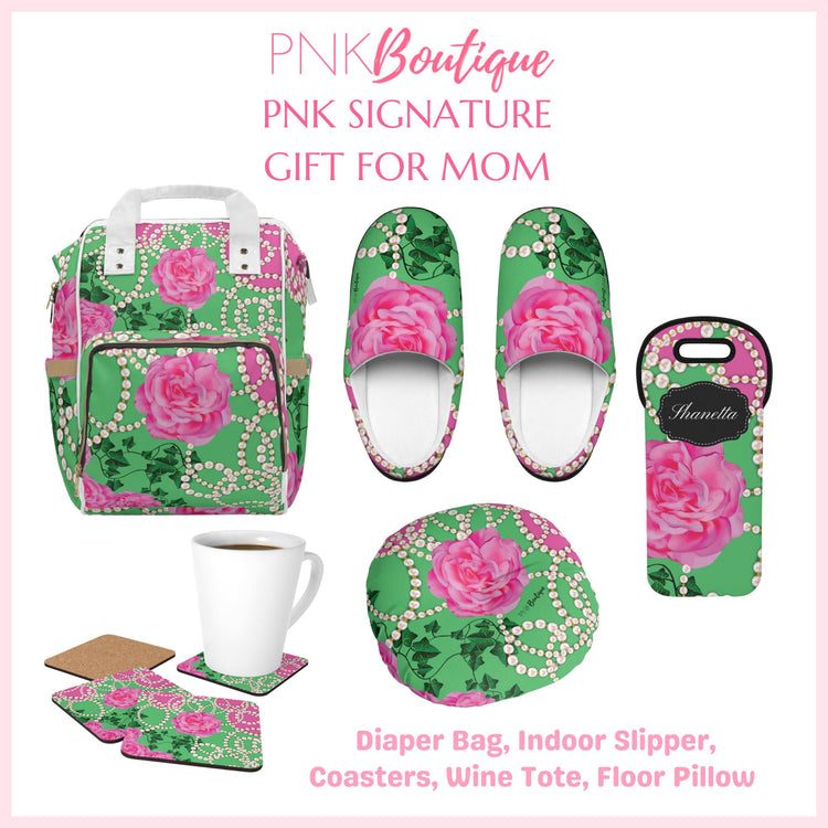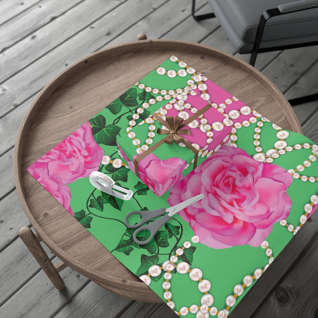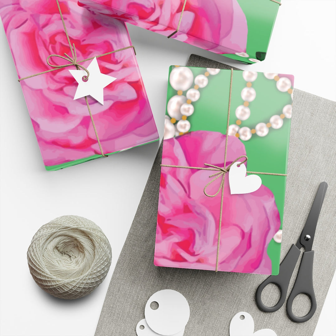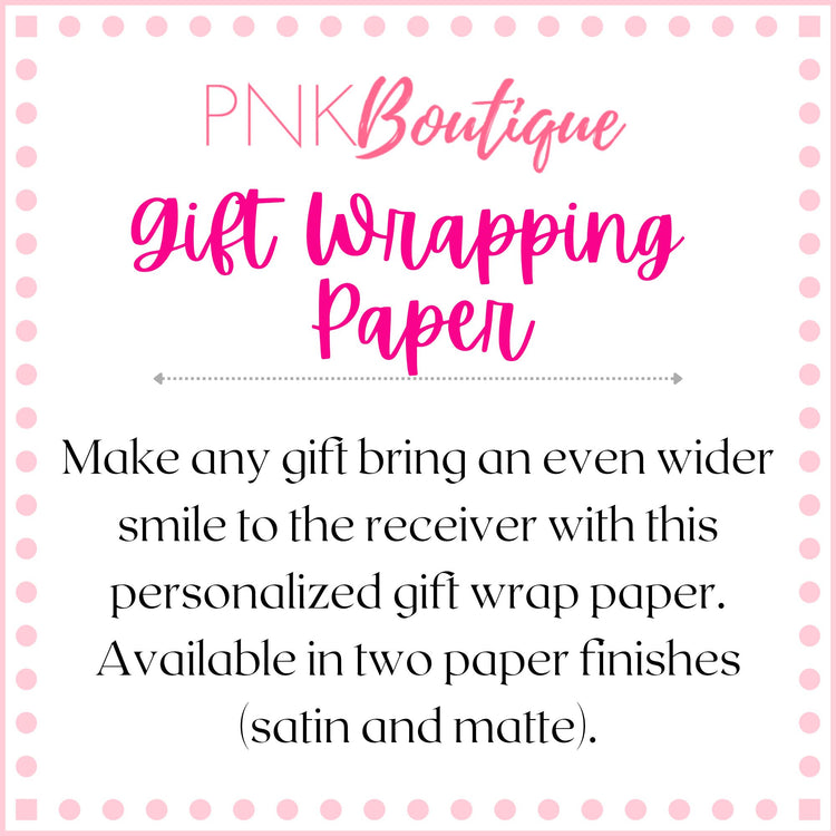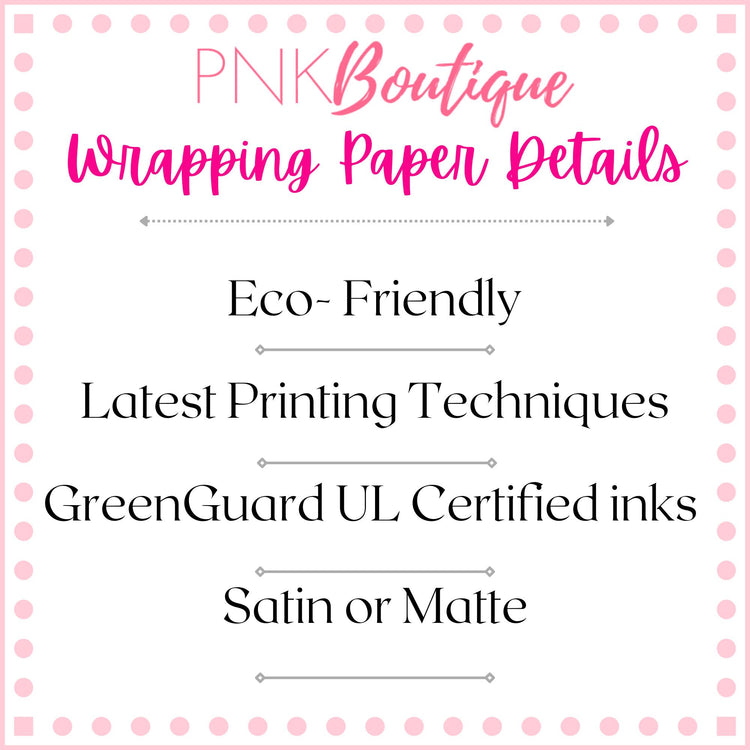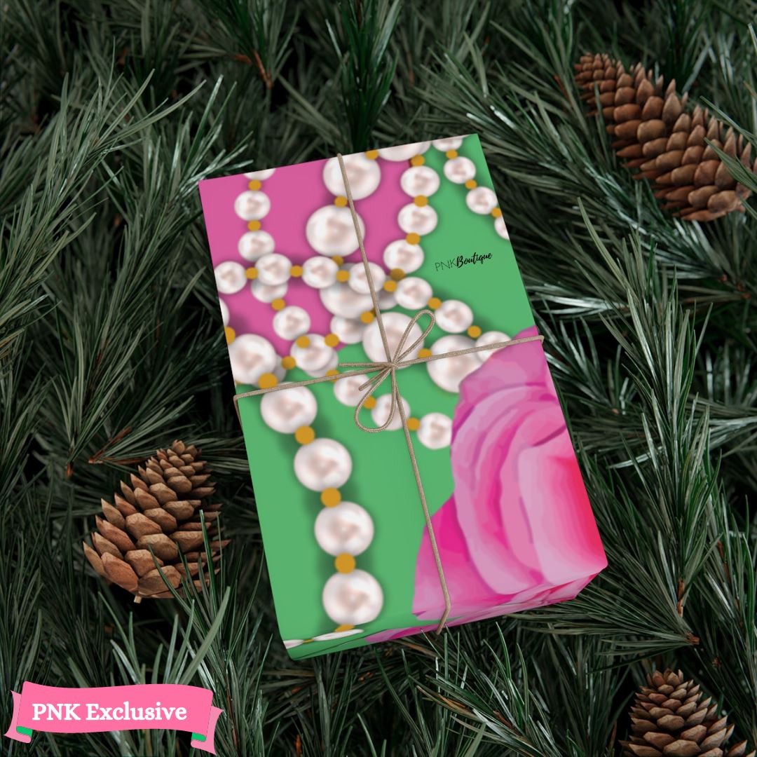 Make any gift bring an even wider smile to the receiver with this PNK Signature Print gift wrapping paper. Available in two paper finishes (satin and matte). Great to have on hand for all of your sorority gifts or a pink and green holiday.