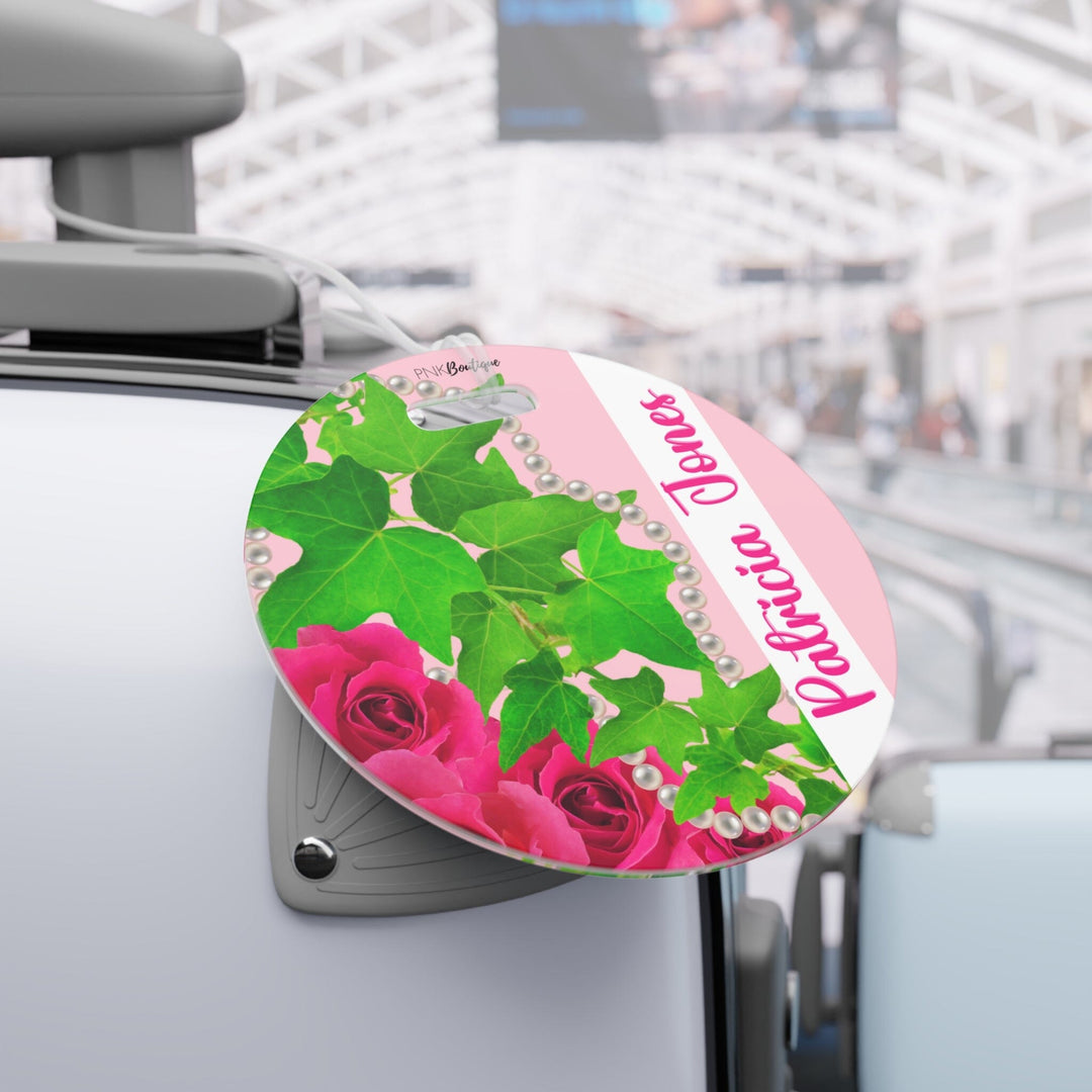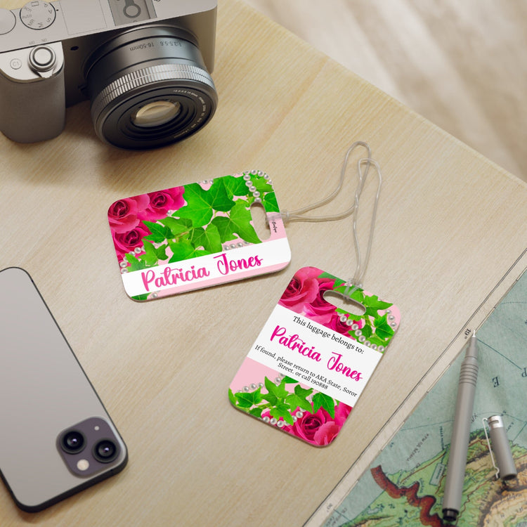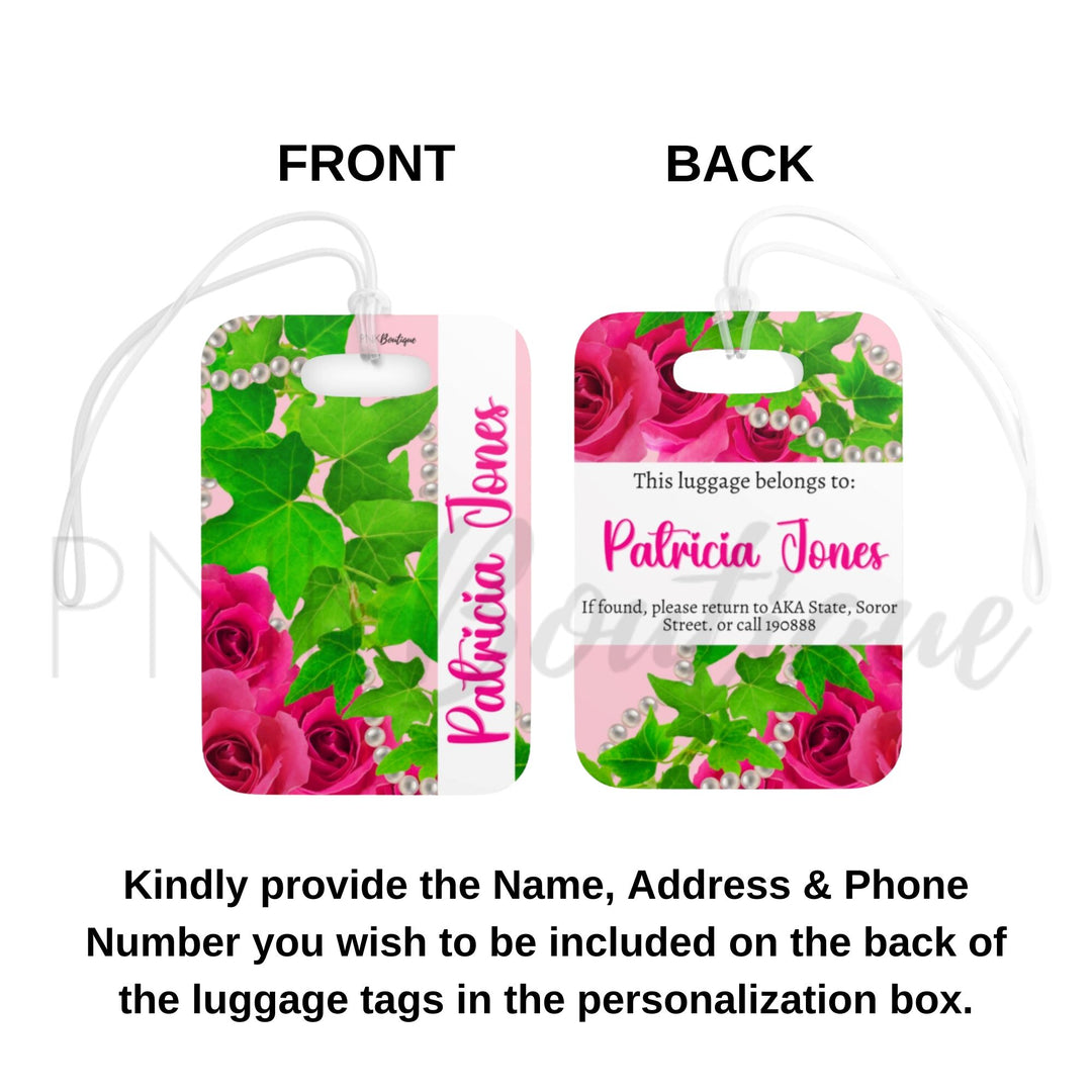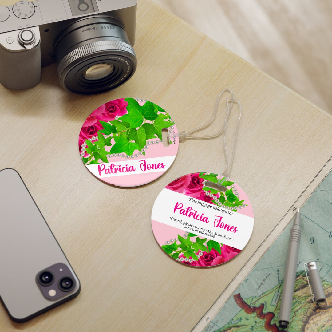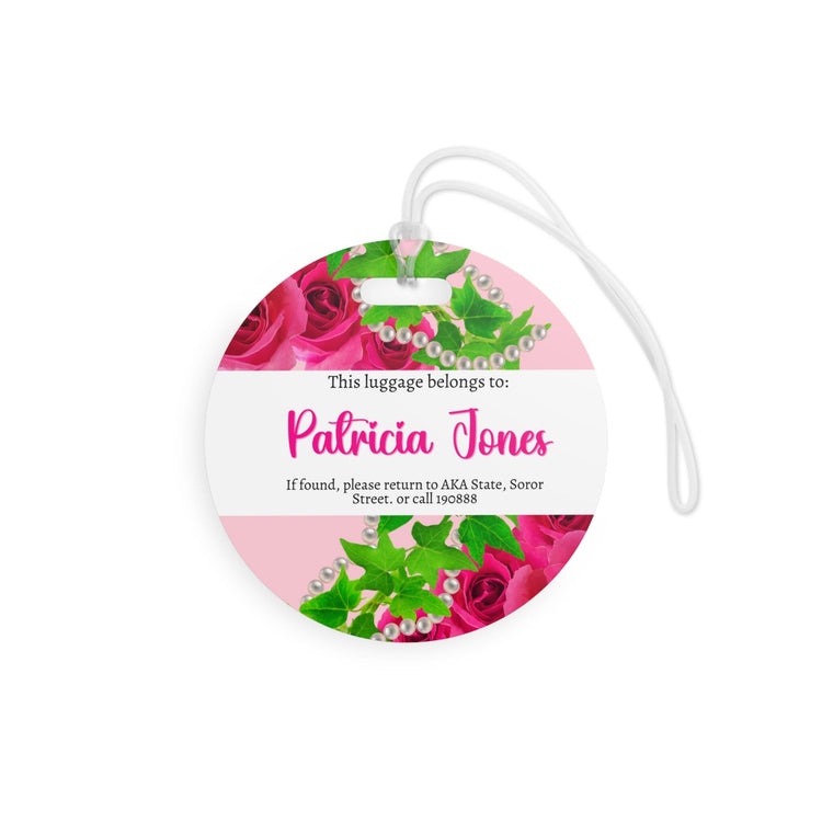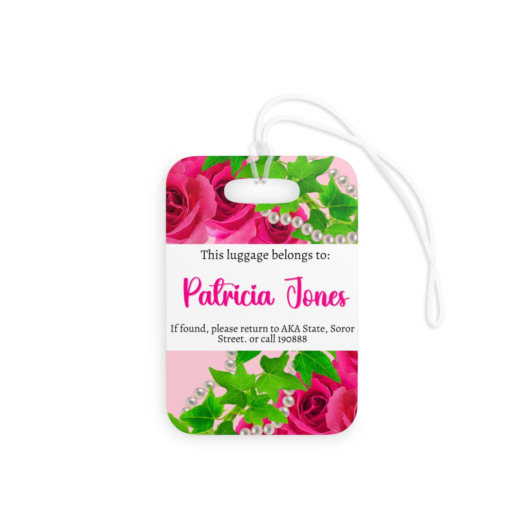 Perfect women's gift and gift for members of Alpha Kappa Alpha Sorority, especially those who like to travel. End carousel confusion in style with these PNK Exclusive plastic luggage tags. Featuring a glossy finish, these tags come in a round and a rectangle shape for you to choose from. Each tag features a flexible, clear, acrylic tie while your prints go on both sides of the tag. It looks and feels luxurious, while also making a perfect gift for any traveler.